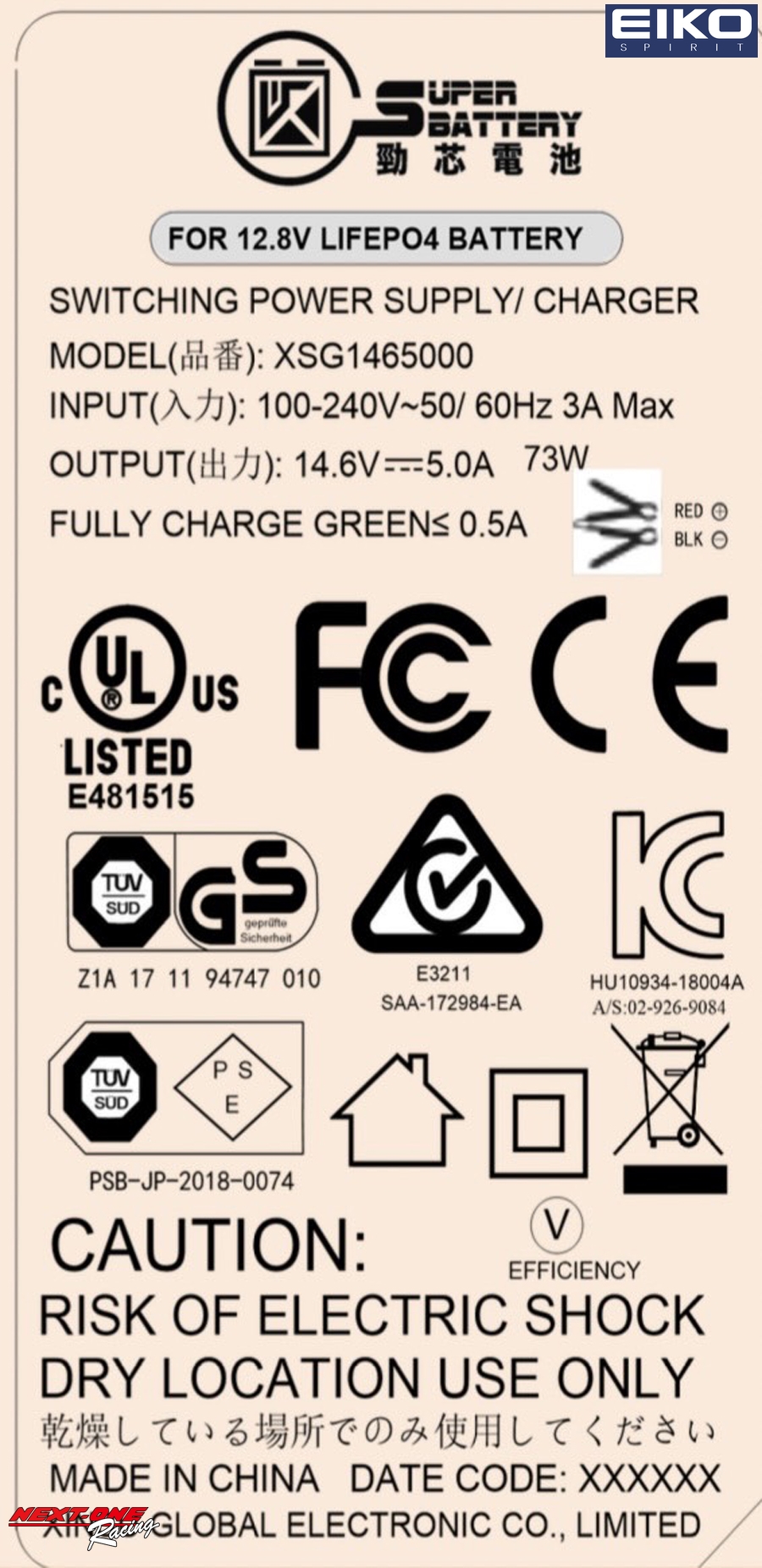 EIKO Litium ion Battery 専用充電器 リチウムバッテリーチャージャー&コネクター