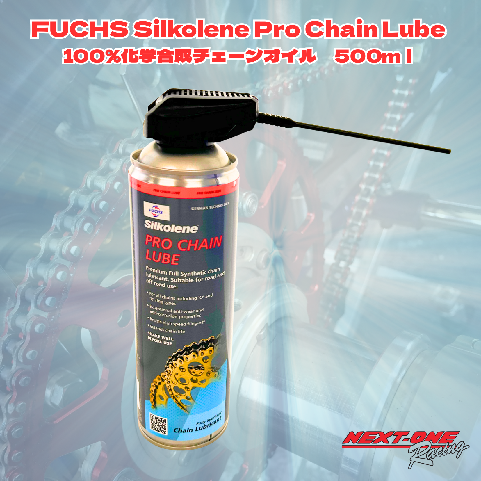 FUCHS Silkolene Pro Chain Lubeは、100%エステルベース(100%化学合成)で配合されたプレミアムチェーンオイルです。