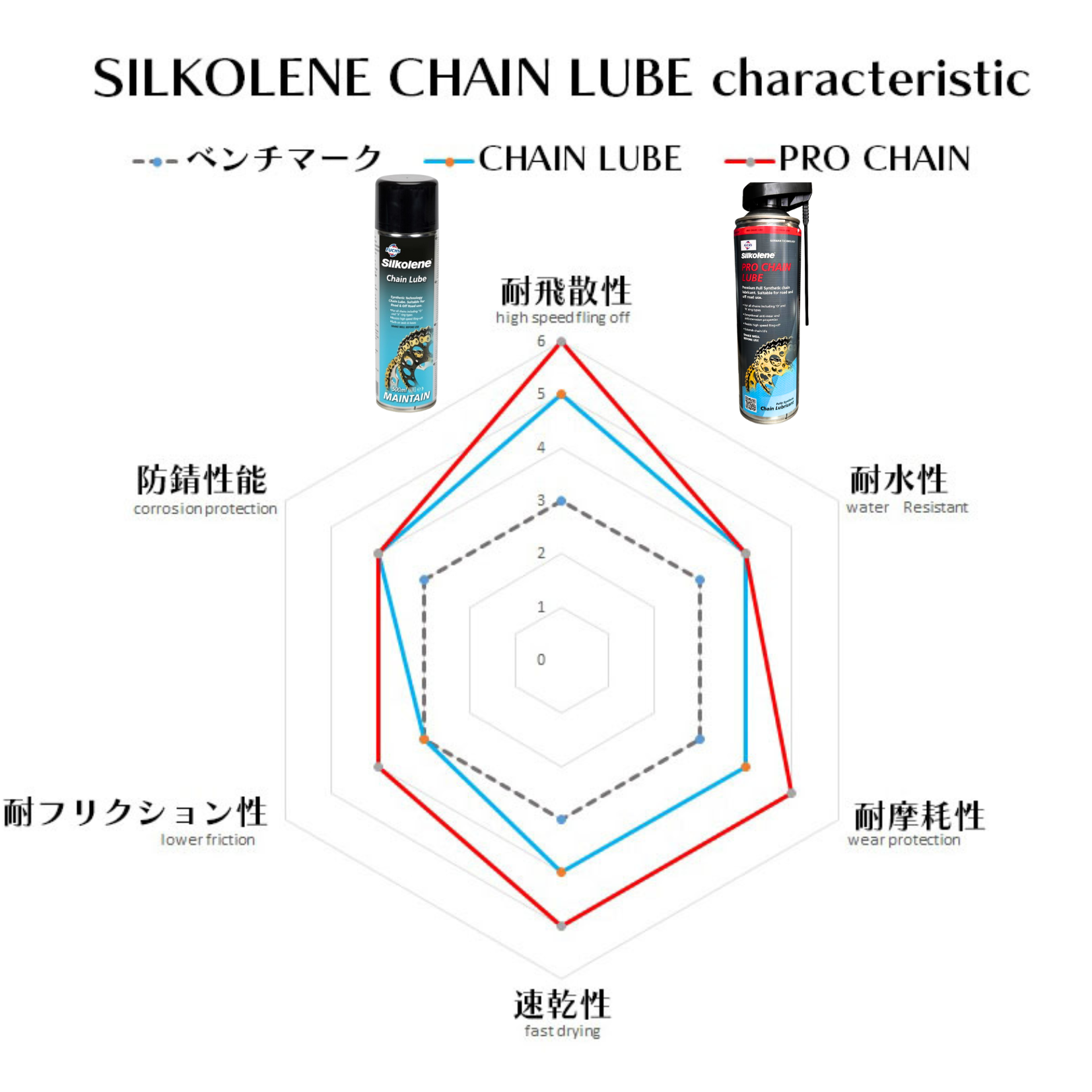 FUCHS Silkolene Pro Chain Lube は、レースバイク・高性能スポーツバイク・レーシングカートなど、チェーン保護を徹底したいユーザーにおすすめのハイグレードオイルです。